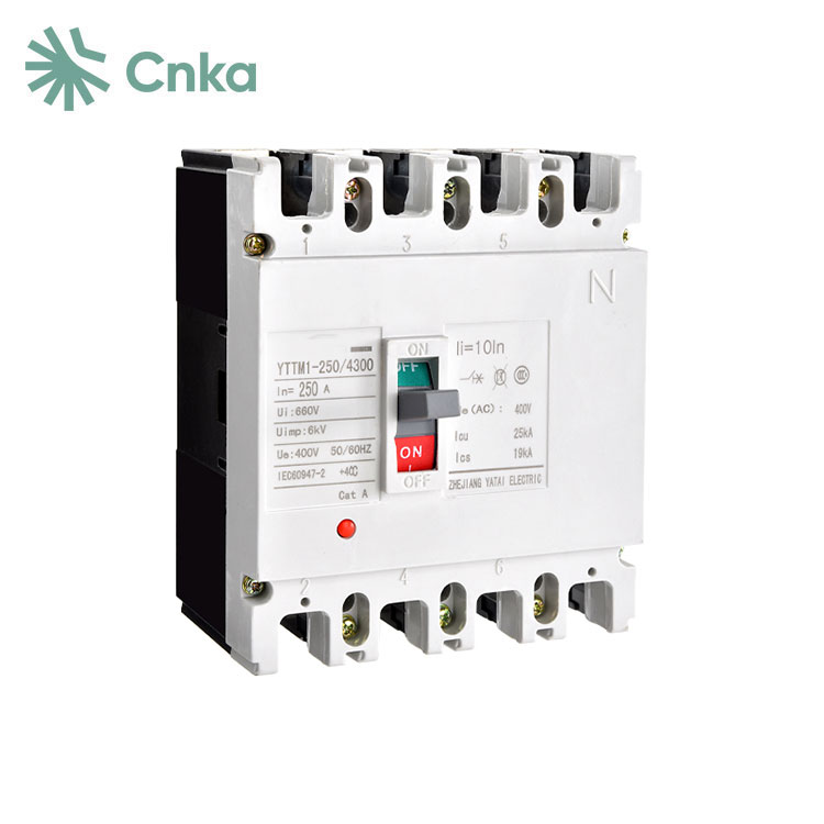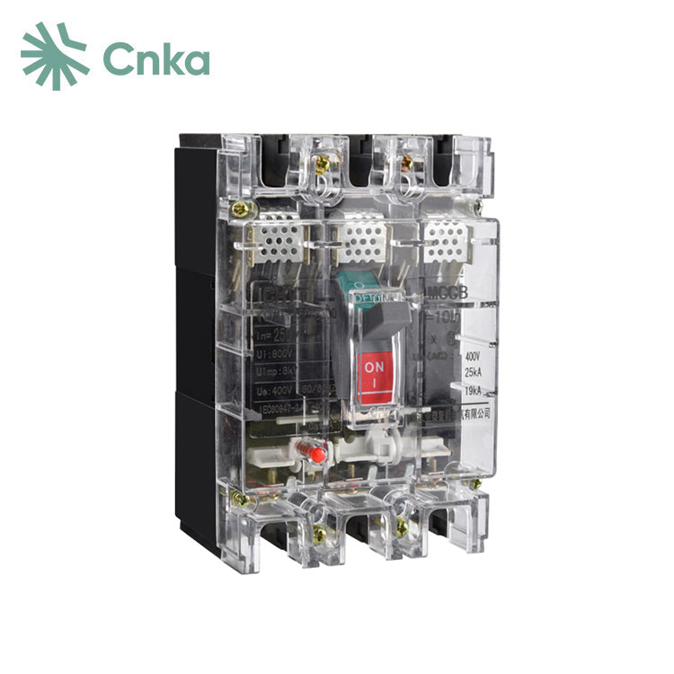 Kiinan toimittajan CNKA:n uusin 100 ampeerin 4-napainen AC MCCB tarjoaa kilpailukykyisen hinnaston ja käyttää muovieristeitä kotelona johtimien eristämiseen maadoitetuista metalliosista. Kun virta ylittää asetetun arvon, MCCB katkaisee virran automaattisesti. Tyypillisesti näissä katkaisijoissa on lämpömagneettinen laukaisuyksikkö tai puolijohdelaukaisuanturit mallista riippuen. Laukaisuyksikkö voi olla joko lämpömagneettinen tai elektroninen. Yleisiä nimellisvirtoja ovat 16, 25, 30, 40, 50, 63, 80, 100, 125, 160, 200, 225, 250, 315, 350, 400, 500 ja 630 ampeeria.