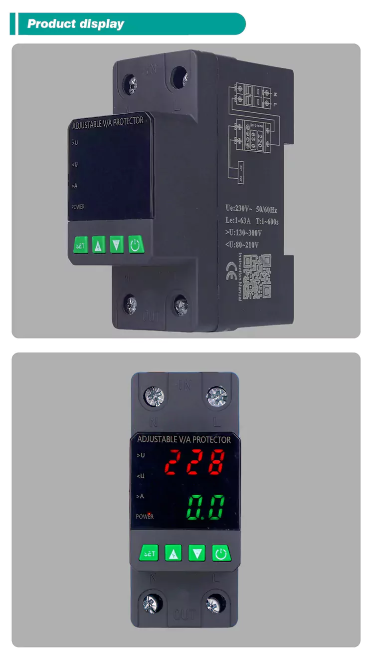 Varustettu digitaalisella näytöllä ja valmistettu tuotuilla modulaarisilla elektronisilla komponenteilla, sillä on korkea luotettavuus ja suorituskyky. Suojaaja katkaisee virtalähteen automaattisesti ja nopeasti epänormaalien jännitteiden (kuten ylijännitteen, alajännitteen tai ruudukon vaihtelut) aikana ja palauttaa virtalähteen sen jälkeen, kun jännite palaa normaaliksi.
