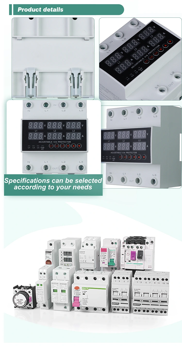 Niissä on digitaalinen näyttö ja ne on valmistettu maahantuoduista modulaarisista elektronisista komponenteista, mikä tarjoaa korkean luotettavuuden ja suorituskyvyn. Epänormaaleissa jännitteissä, kuten yli-, alijännitteessä tai verkon heilahteluissa, suojat voivat automaattisesti ja nopeasti katkaista virran ja palauttaa sen, kun jännite palautuu normaaliksi.
